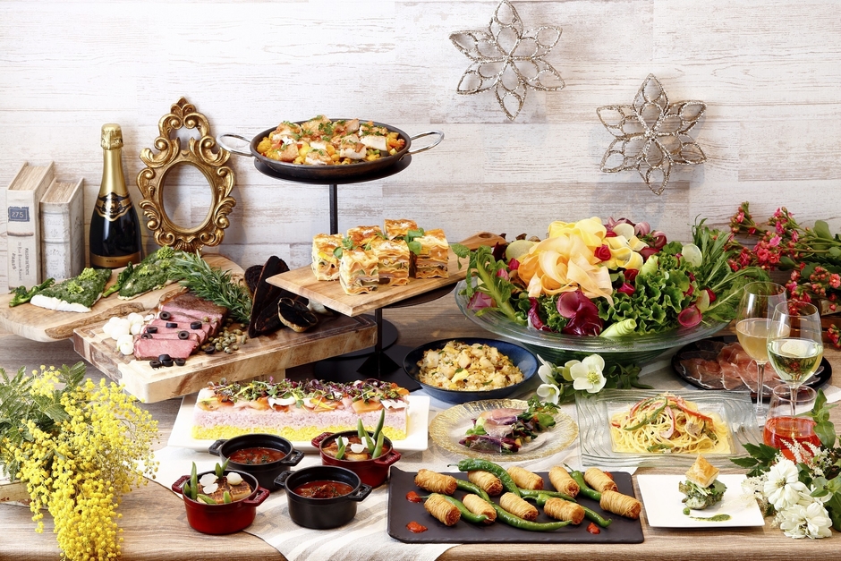 フェスティブシーズンにふさわしい華やかなメニューの数々、食後のスイーツや15種類以上のアイスクリームとご一緒に楽しんでいただけます。