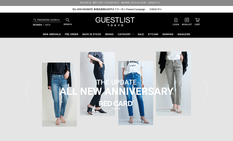 ゲストリストは直営オンラインショッピングサイトを「GUESTLIST TOKYO」として、デザインや機能、サービスなど、より進化したオンラインサイトへとリニューアルいたします。