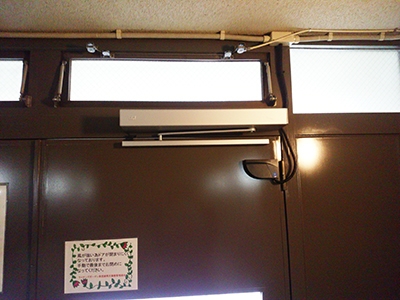 〇マンション通用口、オフィスビル通用口、駐車場・駐輪場出入口、ゴミ置き場室の扉、風除室の扉、車イス利用の扉、住宅玄関扉、食品工場(HACCP対応扉)、レントゲン室等の鉛入り扉、映画館の扉、風の営業が有る扉、開閉に苦労する扉などの開き戸に設置できます。