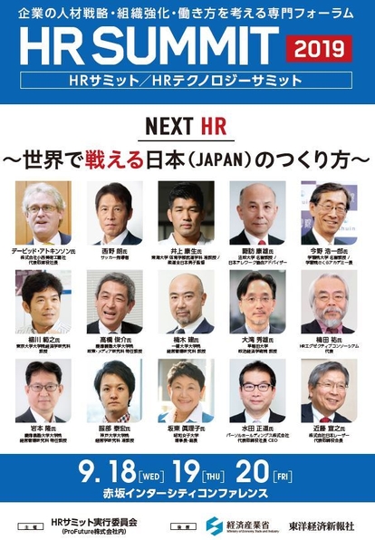 デービッド・アトキンソン氏、井上 康生氏、西野 朗氏登壇! 「HRサミット2019/HRテクノロジーサミット2019」が 9月18日~20日に開催