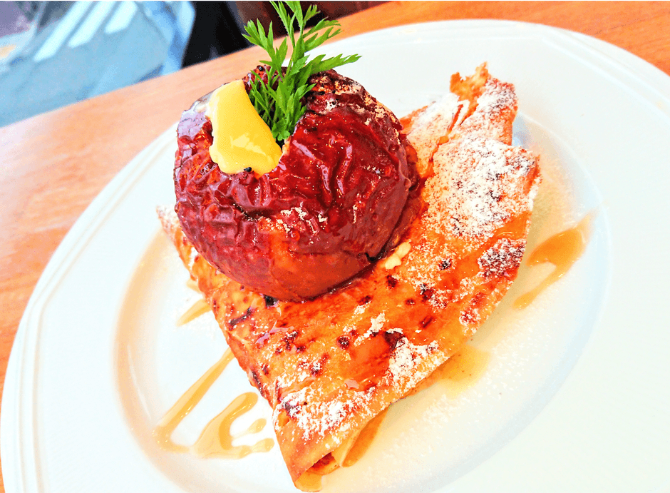 焼きりんごが丸ごとのった新触感クレープ新メニュー12/1発売 ~ パリッバリッ生地が好評の行列店 ~