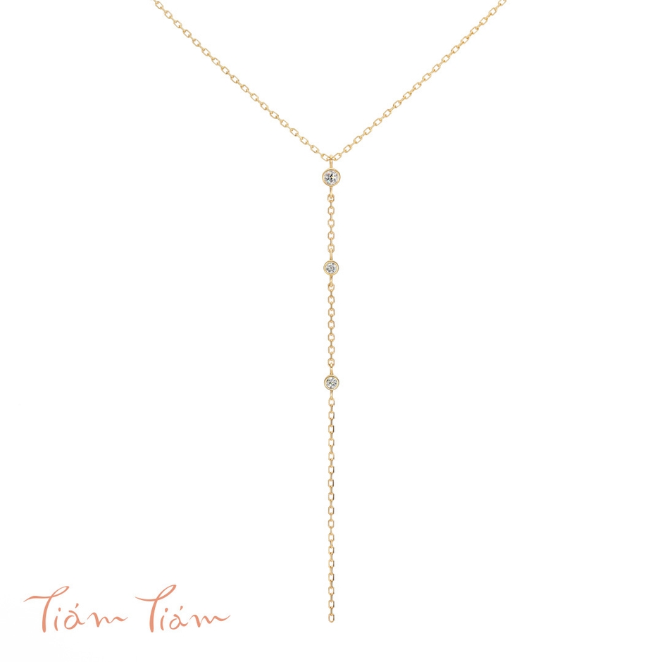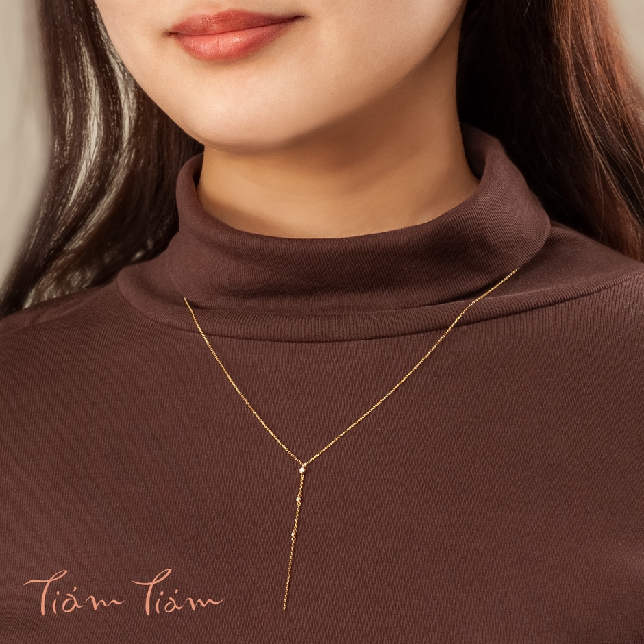 ダイヤモンドの裏側部分には、より光を取り込んでダイヤモンドが美しく輝くための穴(光の通り道)も。爪にひっかかりやすい引き輪を使用しており、ネックレスの着け外しも簡単。首をすっきりと長く見せてくれる縦長のデザインは、デイリー使いはもちろん華やかなシーンにも。幅広くコーディネートの主役になるネックレスです。