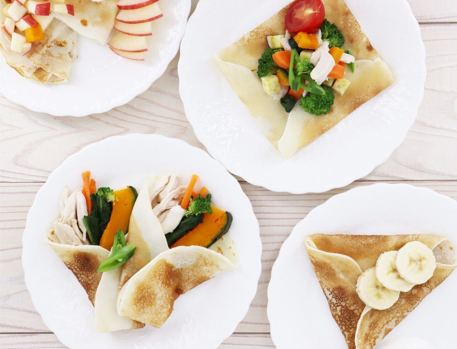 フルーツやヨーグルトを巻いてデザートにしたり、野菜や鶏肉などを飾ってガレット風に仕上げたりと、愛犬のおやつやごはんに幅広くご利用いただけます。
