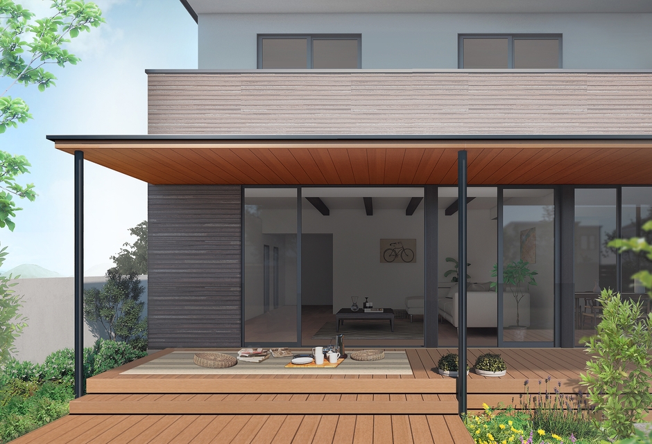 「ファンルーフ」は、フラットな木調の天井材を用いたシンプルで建物と一体感のあるデザインのテラスです。リビングの天井を延長したかのような深い軒下は、庭と室内とのつながりを生み出し、四季を通じて心地よく過ごせる新たな生活空間を提供します。昨年の「マイポート7」に続き2年連続のグッドデザイン賞の受賞となりました。