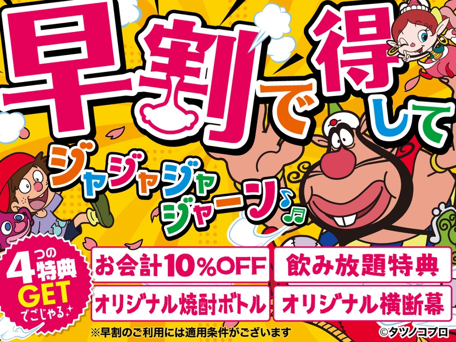 幹事さまに朗報! 【早期ご予約でお会計10%OFFなどの特典!】 ご宴会を盛りあげるための特典つき歓送迎会 「早割」キャンペーン実施