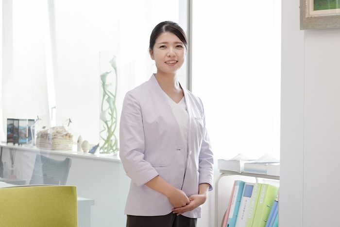 「このジャケットを着ると、役職者としての責任感が高まり、見られている意識が強くなりました。患者さんや他職種の方から「看護長さん」と声をかけてもらう機会も増え、スムーズなコミュニケーションにつながっています。デザインも洗練されており、藤色は顔色を明るく見せ、上品な印象を与えてくれます。汚れが落ちやすく、シワになりにくいなど機能面も優秀で、長く愛用できる一着だと感じています。」