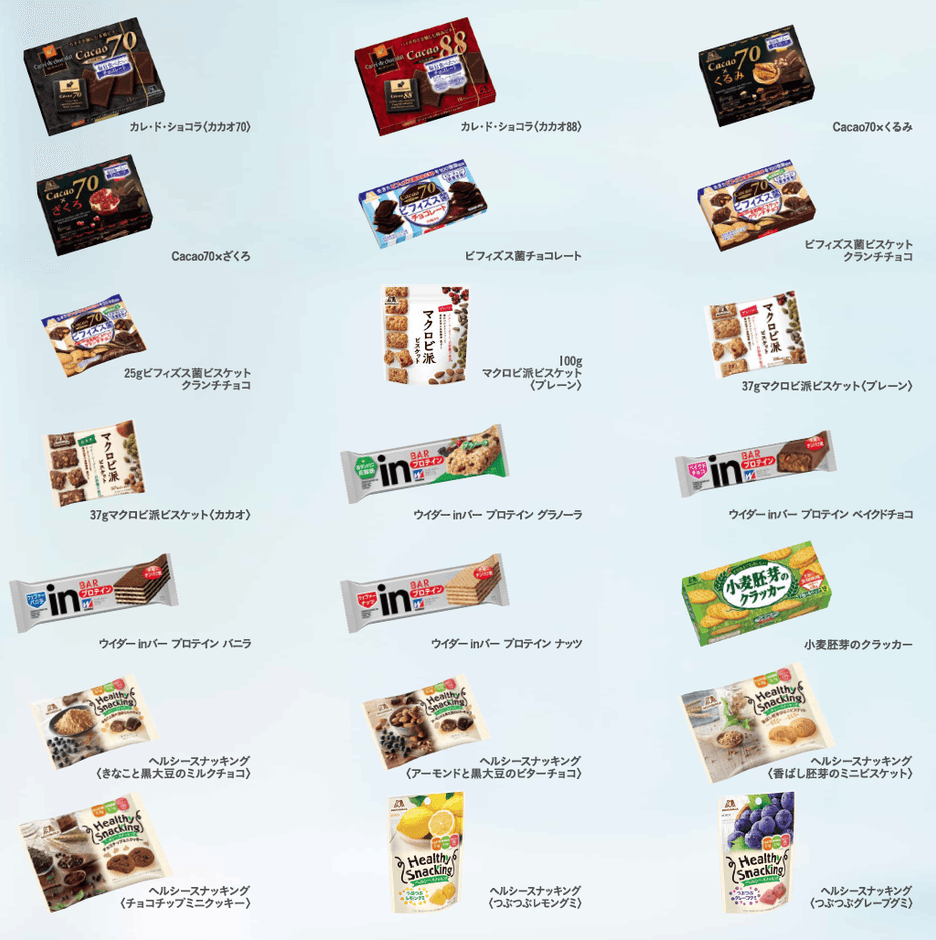 ・対象商品:カレ・ド・ショコラ カカオ70、カカオ70×くるみ、カカオ70×ざくろ、カレ・ド・ショコラ カカオ88、ビフィズス菌チョコレート、ビフィズス菌ビスケット クランチチョコ 25g、ビフィズス菌ビスケット クランチチョコ 51g、小麦胚芽のクラッカー、マクロビ派ビスケット プレーン 37g、マクロビ派ビスケット プレーン 100g、マクロビ派ビスケット カカオ 37g、inバー プロテイン グラノーラ、inバー プロテイン ベイクドチョコ、inバー プロテイン バニラ、inバー プロテイン ナッツ、きなこと黒大豆のミルクチョコ、アーモンドと黒大豆のビターチョコ 、香ばし胚芽のミニビスケット、チョコチップミニクッキー、つぶつぶレモングミ、つぶつぶグレープグミ