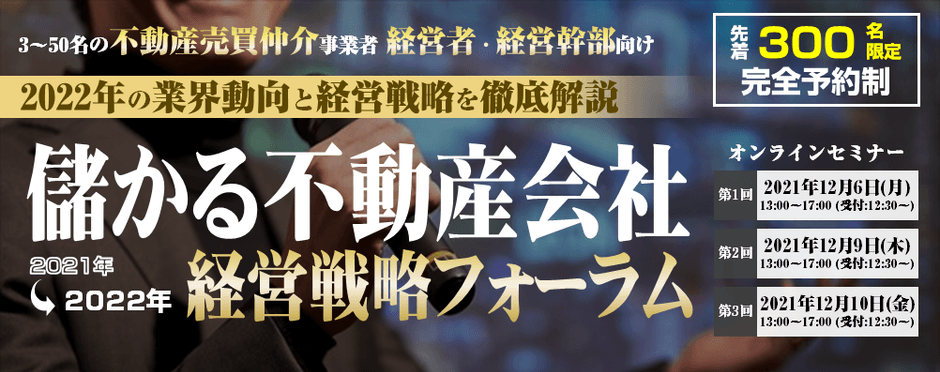 2021年に儲かった不動産会社の経営戦略と 具体的な取り組みを徹底解説 『儲かる不動産会社 経営戦略フォーラム2021』 12月6日より順次開催