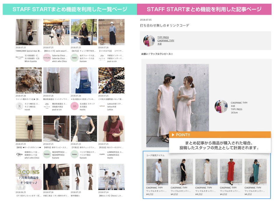 5:「STAFF STARTまとめ」もコーディネート同様に、売上計測やPV計測をすることができる。