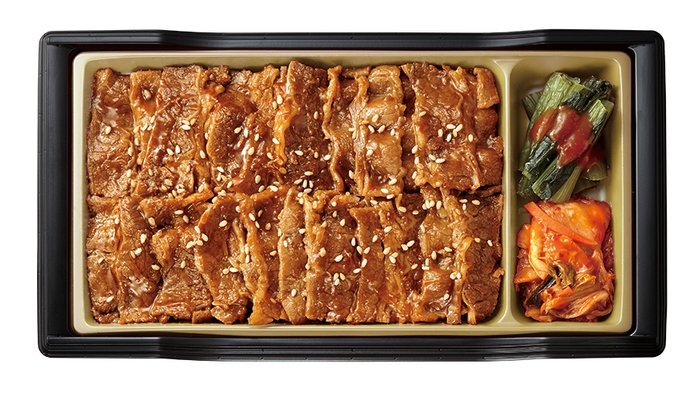 メインとなる焼肉弁当のこだわりは、肉とタレです。肉は赤身と脂身のバランスが良いのが特長である“ブラックアンガス牛”をたっぷり使用。タレは牛角店舗で使用している肉の“もみダレ”と食べる際の”つけダレ“の2種類を使い、にんにく、ごま油も効いたやみつきになる味わいに仕上げています。 [チルド弁当]