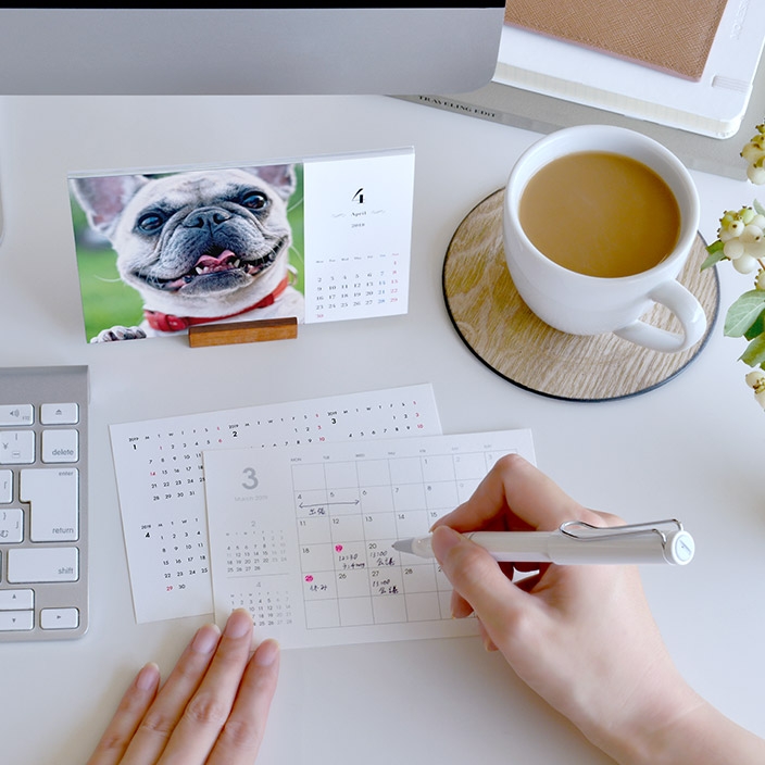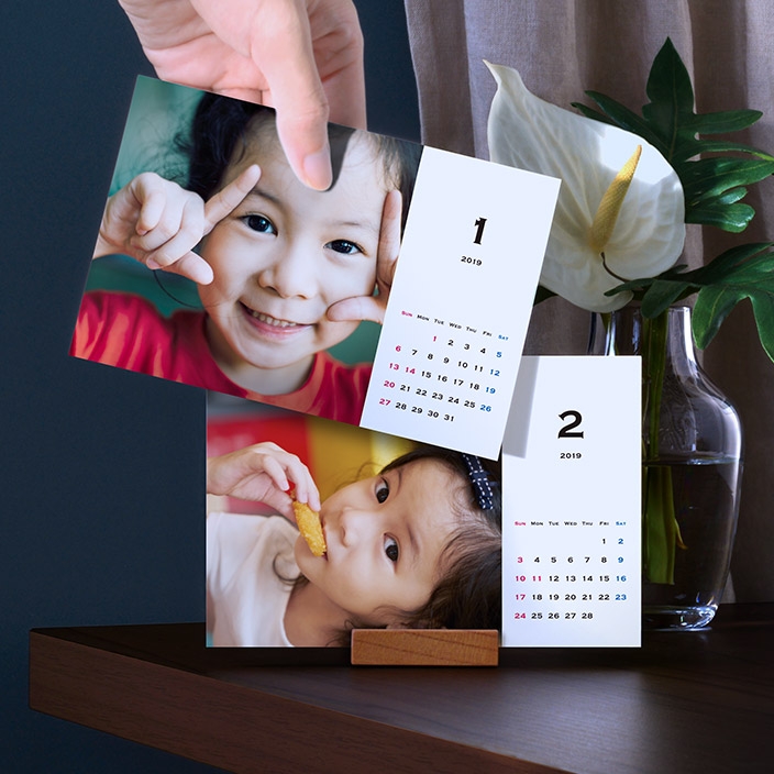 「TOLOT卓上カレンダー」は、自分で撮った写真や描いたイラストを使ってオリジナルのカレンダーが作れます。2019年版のデザインは7種類。後日人気キャラクターのデザインも予定しています。