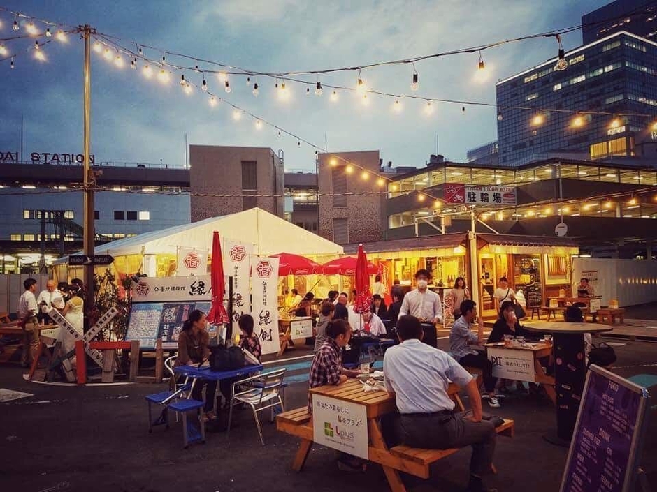 EKITUZIは、2017年11月10日から2019年3月31日までの期間限定でOPENした“食と遊びで未来を志向する実験広場”です。その広場内で営業を行っている「仙台炉端料理 縁側」が、一般的には河川敷などの野外で行われる秋の季節行事を、仙台駅という中心地で実験的に行うイベントになります。