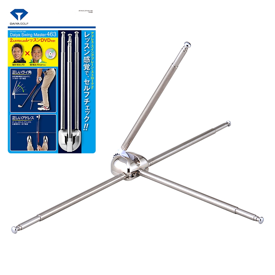 そこで当社は、伸縮する4本の棒を使用して、ゴルフスイングのセルフチェックができる『ダイヤスイングマスター463』を発売します。『ダイヤスイングマスター463』は、着脱可能な2本の棒と角度調節できる棒を、チェックしたいスイングに合わせて設置します。様々な使い方により、アドレス、スイングプレーン、パッティングストロークの確認ができます。また、植村ツアープロコーチと関ティーチングプロが使い方を解説したレッスンDVD付きで、実際にレッスンを受けているような感覚で使用することができます。
