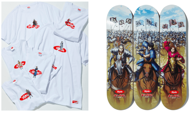 スケートブランド「Slyde(スライド)」と「キングダム」のコラボアイテム。本コレクションのために描き下ろされたイラストをデザインしたTシャツや、シリアルナンバー入りのスケートボードデッキを展開しています。3枚1セットのスケートボードデッキは限定100セットの全シリアルナンバー入り!