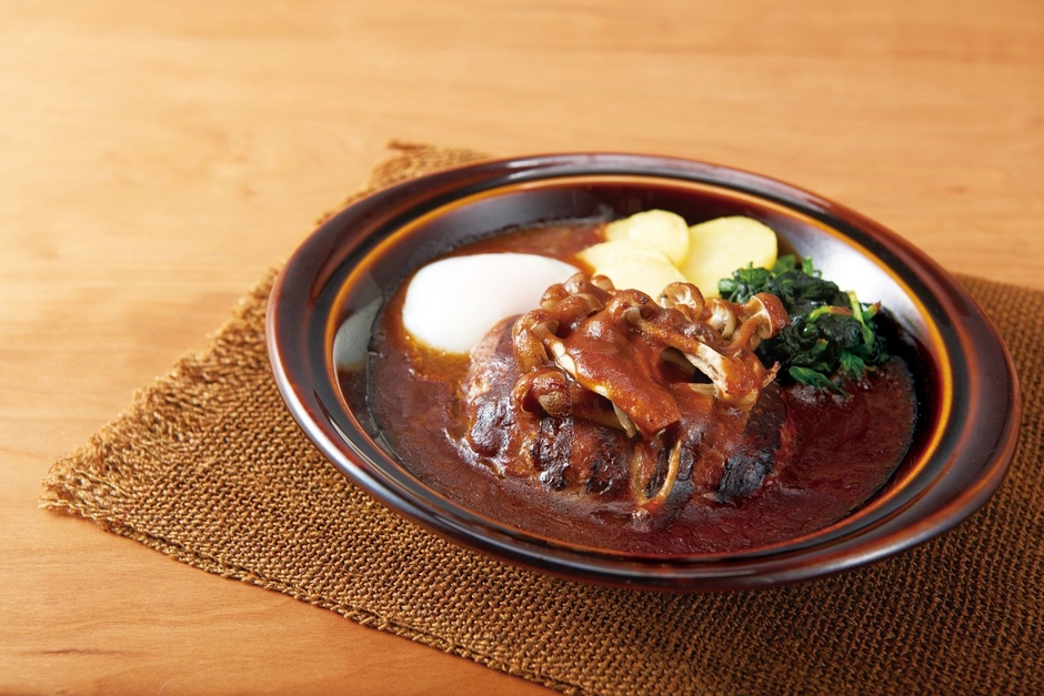 ふっくら柔らかな合挽きハンバーグを、こだわりの新デミグラスソースと一緒にじっくり煮込んだ熱々メニュー。美味しさを一新したデミグラスソースは、丁寧に焙煎したルウに、赤ワインやビーフ、チキンの旨みをプラスした奥深い味わい。ハンバーグの旨みと相まって、深みのある美味しさを引き出します。