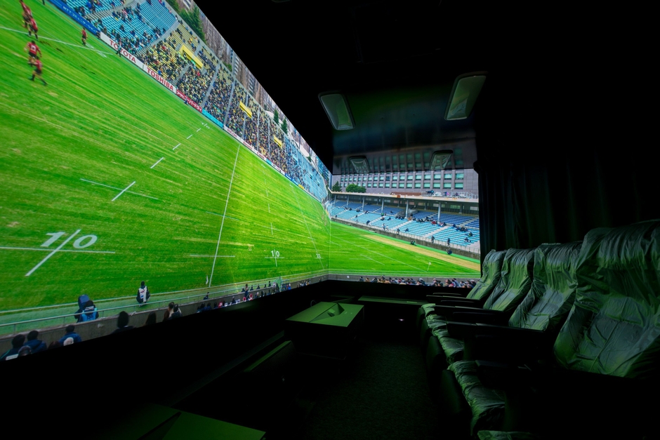 今回提供した仮想空間Warp Squareは、ソニー製4K超短焦点プロジェクターを計4台と、13K(前面(7K)および側面(3K))のワイドスクリーンで構成しており、視聴者は仮想的に作られた繋目のない映像に囲まれることで、あたかもそこにいるかのような没入感を体験できます。また5.1chオーディオの設備も配備しており、映像音響の両面からこの特別な空間を作っております。