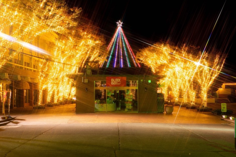 入場ゲートすぐに位置するセンターモールの並木も心温まる光に包まれます。その他にも広島を中心に活動するアーティスト兼デザイナー「さとうもぐも」さんのフォトスポットも登場。