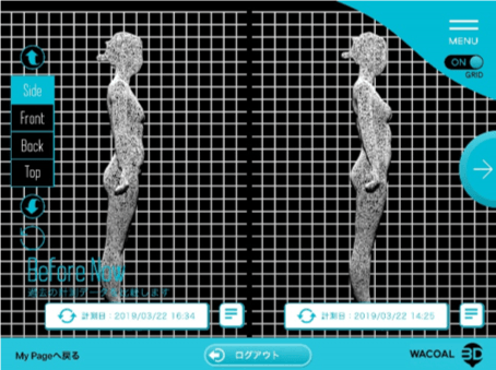 ▲アプリケーション画面(3Dスキャンボディデータ・Before/Now比較)