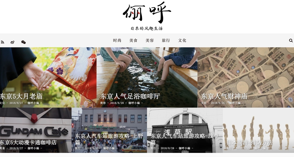 中国語版では、「時尚(アパレル)」「美食(フード)」「美容(ビューティー)」「旅行」「文化」5つのカテゴリで日本のモノ・コトを発信します。