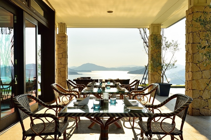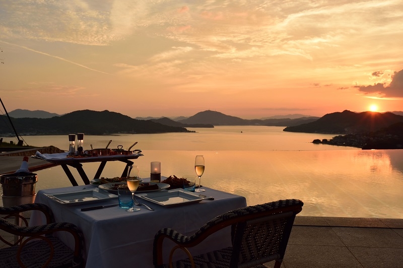 キラキラ光る水面とその先に佇む瀬戸内の海や山、多島美…ここは大人ならではの特別な空間。