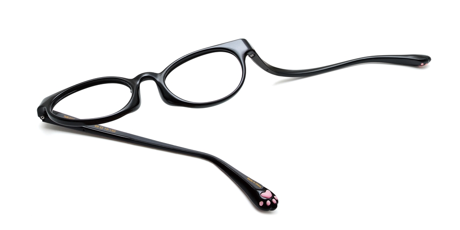 「トリプル成型」という技法を用いて3つの素材を重ね合わせてフレーム・テンプル部分を作ることで猫の足・肉球を立体的にデザイン。触って気持ちいい肉球部分は「メガネの滑り止め効果」も果たします。