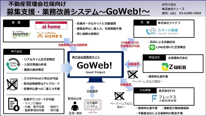 総合不動産業の株式会社Good不動産(本社:福岡市中央区、代表取締役:牧野 修司)は、不動産管理会社様向けの募集支援・業務改善システム「GoWeb!」を開発。このたび、株式会社ティーズ(本社:東京都中央区、代表取締役:寺本 高廣)を通じて、9月25日に販売開始いたします。
