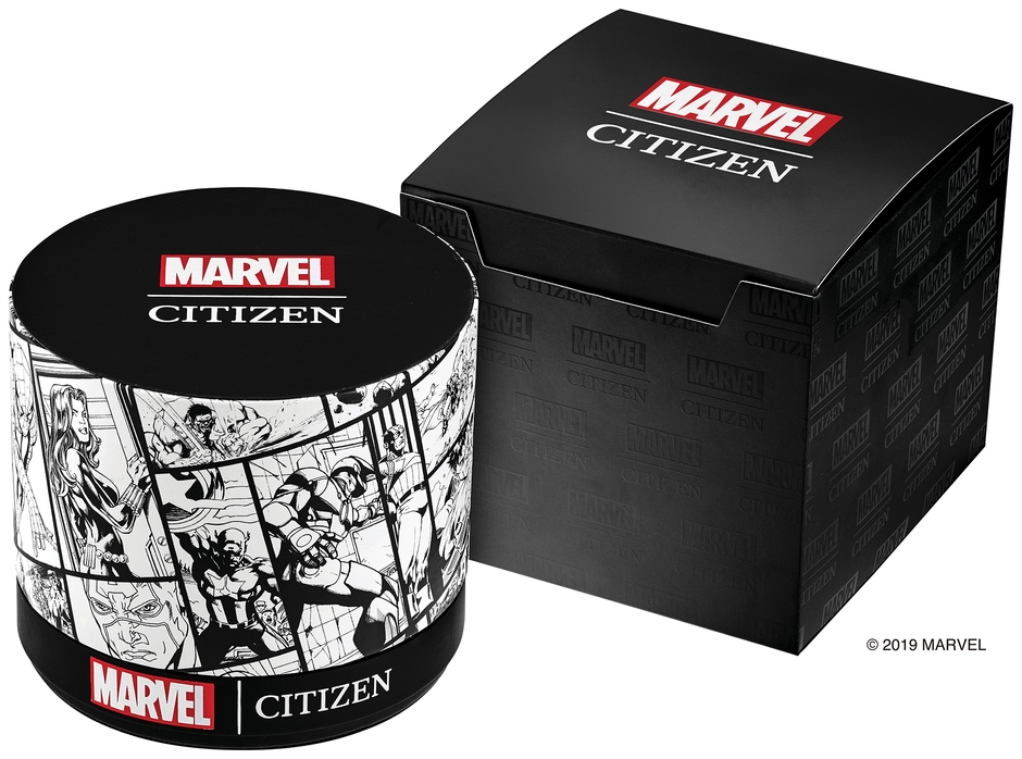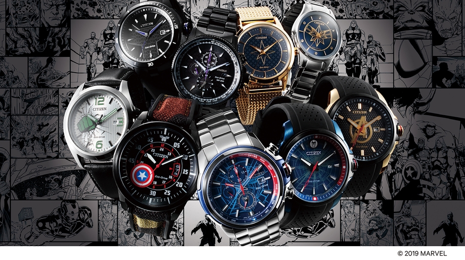 シチズンは、創業100周年を迎えた2018年から、カリフォルニア ディズニーランド・リゾート及び4つのディズニー・テーマ・パーク、及びマーベル・ニュー・メディアクリエイティブ・スペースのオフィシャル・タイムピース※1をつとめています。その提携の一環として、マーベルのスーパーヒーローたちをデザインモチーフにしたオリジナルモデルが実現しました。第一弾モデルは、すでに北米市場を中心に好評発売中のラインナップから9モデルを、10月下旬に発売します。