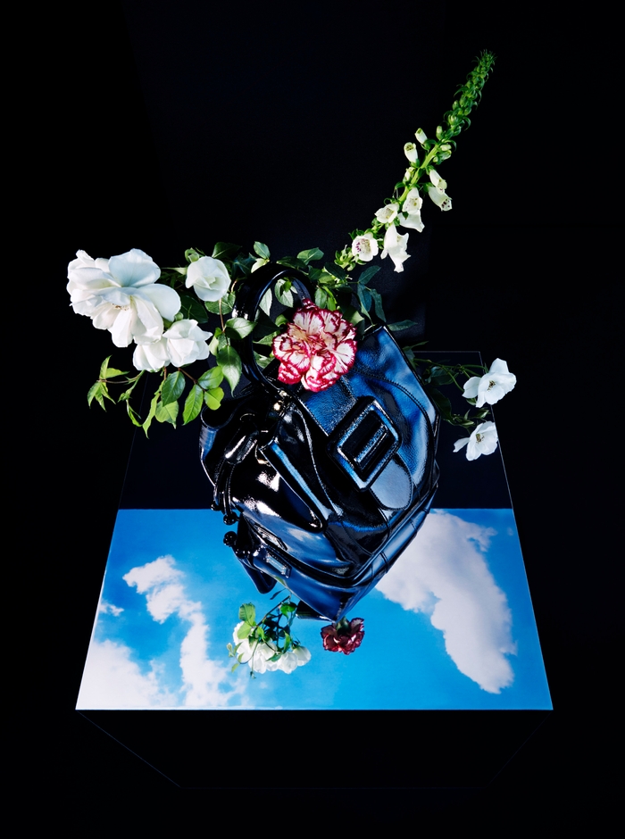 雰囲気はまるで夢の中の様な感じです:背景となっている強い黒は花の繊細さによって柔らかくなっています-それはブルマリンの美に普遍的な要素です-まるで絵画のように不意に咲いています。光がミラーに反射され、コレクションの刺繍やテクスチャーの鮮やかさやリッチ感を照らしています。