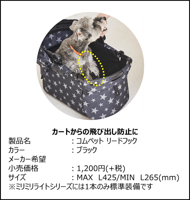 また、カートからの飛び出し防止に使用するリードフックは、カート内部に固定用のループがあるので固定も簡単です。