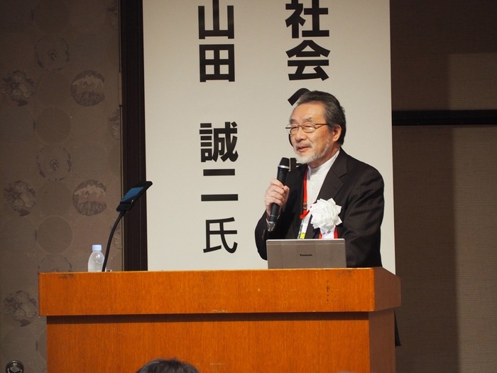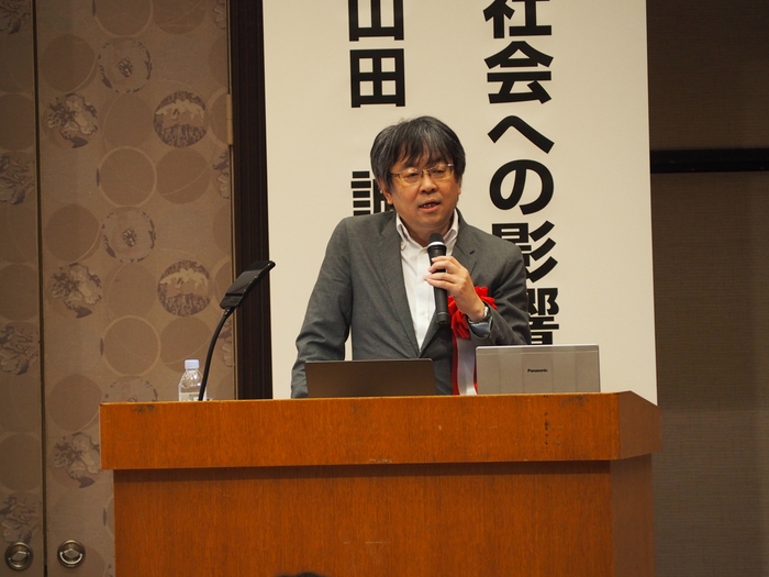 特別記念講演は、国立情報学研究所の山田誠二教授が「人工知能AIの現在と近未来社会への影響」と題してAIの現状について解説し、「得意分野と不得意分野があり、人間の業務を丸ごと代替するというのは非現実的」と指摘。その上で「AIと協働する未来社会に向けて、使い方を教えるべきではないか」とAIリテラシーの必要性を強調しました。