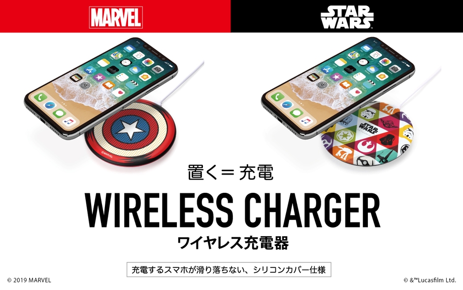 「MARVEL」「STAR WARS」デザインのQi認証のワイヤレス充電器です。