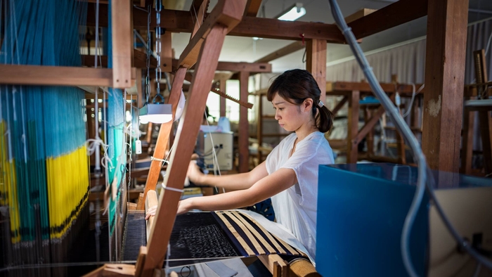 絹織物の日本最大産地 京都・丹後でオールハンドメイドにこだわった商品を製織・販売する「KUSKA(クスカ)」は、世界的観光スポット・錦市場1階ガラス張り旗艦店にて、1日1人限定で手織り体験を開始いたします。