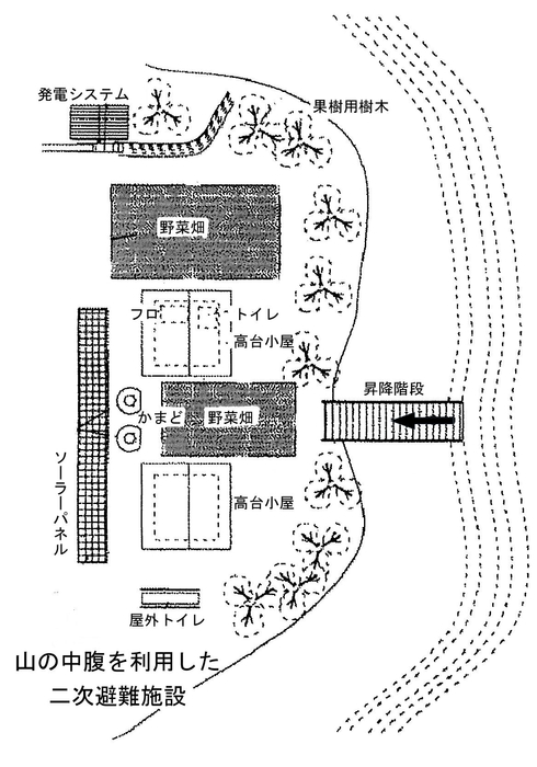 水処理装置および津波避難タワー等の各種防災設備・機器を開発・販売しているフジワラ産業株式会社(本社:大阪市、代表取締役:藤原 充弘)は、山の中腹にキャンプ地などを作り、生活環境を整えて、津波が来襲した後一時的な仮生活を可能とする二次避難施設案を公開いたしました。