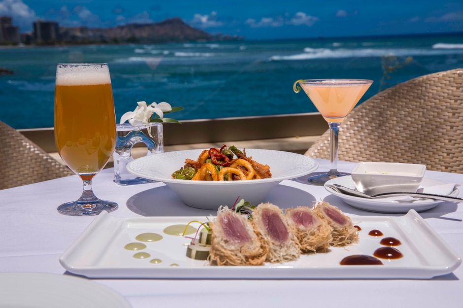ウエディングベニュー「The Terrace By The Sea」の1階に位置し、ハワイの美しい海と空、ダイヤモンドヘッドを一望できるダイニングルーム・バー・テラス席をご用意しております。シェフ自らが地元の農園を訪れて厳選した彩り野菜やシーフード、最高級ステーキなどこだわりの食材を使用したハワイ・リージョナル・キュイジーヌをお愉しみいただけます。
