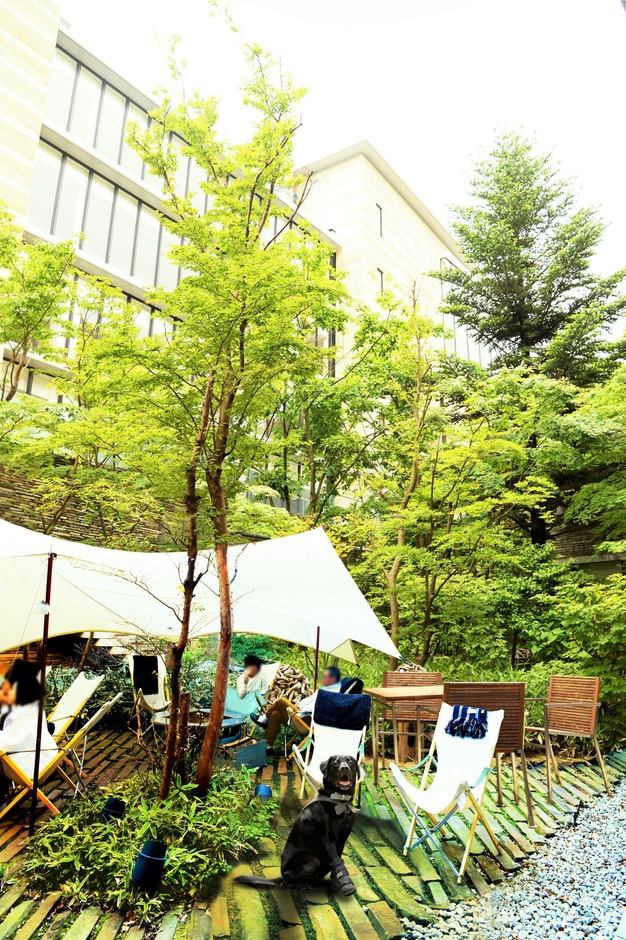 館内リビングルームに隣接した緑あふれる中庭で、8月の一カ月間限定でドッグカフェを営業いたします。初のアウトドアカフェではグランピングをテーマとし、ラグジュアリーでスタイリッシュなデザインが人気のアウトドアブランド「スノーピーク」のキャンプギアが配されたガーデンで、愛犬と一緒にカフェタイムをお楽しみいただけます。爽やかな屋外では、夏限定の甘口シャンパン「モエ・エ・シャンドン・アイス アンペリアル」やドライバーの方に好評のカラフルなノンアルコールカクテル「モクテル」をご用意し、ホテルメイドのアフターヌーンティー、サンドウィッチなどリビングルームの全メニューも提供いたします。夏の青空の下、愛犬と一緒にリゾート気分を存分に満喫いただけます。