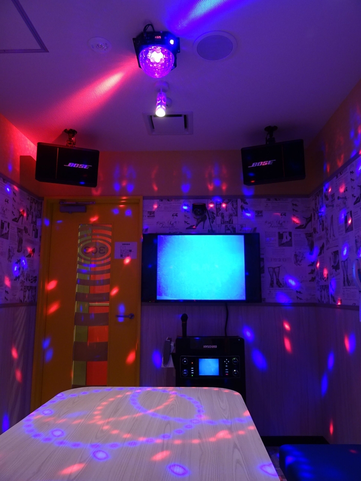 また、全ルームにLEDのミラーボールを導入。ディスコ世代も大満足の激しく盛り上がれる空間です。