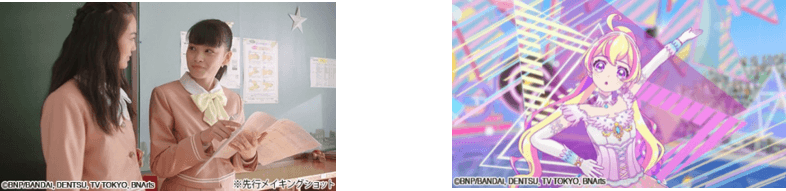 今年9年目を迎えるアイカツ!シリーズは、学園シーンなどの日常パートを実写で描きます。また、主人公たちがゲーム上の世界でアバターとなり、アイドルとして歌やダンスなどをする「アイカツプラネット!」の世界をアニメーションとCGで表現します。シリーズ史上初となる「実写×アニメーション×CG」による番組です。