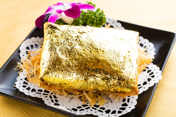 餃子の安亭(アンテイ) 新宿思い出横丁店では、開運を呼び寄せるラッキーワードにあやかった具材を、金箔で包み込んだ「年末ジャ~ンボ金塊春巻」を考案。1等・前後賞合わせて10億円が当たる年末ジャンボ宝くじの発売日と同じ11月21日(水)~12月21日(金)まで、数量限定にてご提供いたします。