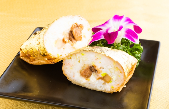 30年来の宝くじファンである店主が腕を振るう当店では、億万長者を夢見るお客様に向けて、「平成最後の年末に、人生の“春”を呼び込んで欲しい・・・」という思いから、金箔を惜しむことなく全体にあしらったジャンボサイズの春巻を考案。また、春巻のおいしさを更に引き立てるべく、「金」を運んできてくれそうな史上最強の“菌”類「マツタケ」を贅沢に使うことで、これまでにない濃厚な味わいを実現しました。平成最後の年末ジャンボを記念して、年末ジャンボ宝くじをご持参いただいた方には、定価の300円引きとなる1個1,000円(税込)で「年末ジャ~ンボ金塊春巻」をお楽しみいただけます。
