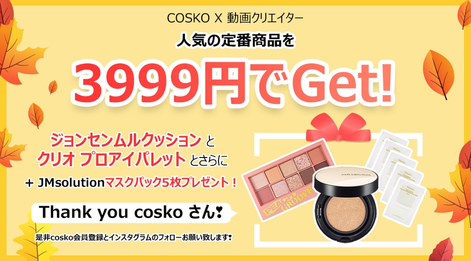 韓国コスメがお得に買える!オンラインショッピングサイト 「COSKO」にて秋イベント「COSKO×動画クリエイター」開始!