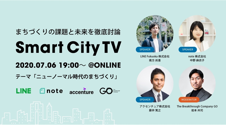 “ニューノーマル時代のまちづくり”の課題と未来を徹底討論 「Smart City TV」7/6開催 LINE Fukuoka、アクセンチュア、note、 The Breakthrough Company GOの4社が参加