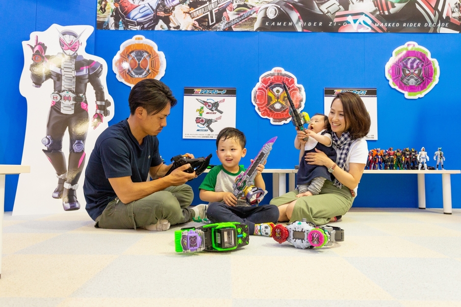 軽井沢おもちゃ王国開園20周年を記念し、関東初登場の『バンダイキャラクタースタジアム』。「遊ぶ!体験!買う!」をテーマに、「仮面ライダージオウ」や「スター☆トゥインクルプリキュア」、「騎士竜戦隊リュウソウジャー」などバンダイの人気おもちゃが勢ぞろいしています。会場内には、自由に遊べるプレイスペースが各コーナーにあり、なりきり体験や、おもちゃを使った製作体験などができるコーナーもあります。会場内で実際に触れたり遊んだりしたおもちゃは、その場ですぐに購入できます。