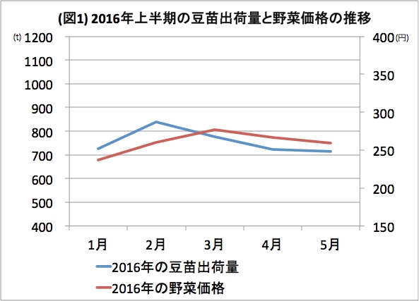 豆苗シェアNo.1(※2)の株式会社村上農園によると、豆苗は他の野菜の出回りが少なくなり、価格が高くなる時期に出荷量が増える傾向にあります(図1)。
