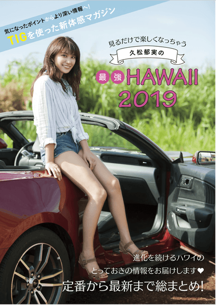 「WATCHY」からリリースされる新しい電子書籍「久松郁実の最強HAWAII 2019」は、タレントの久松郁実さんがハワイの楽しみ方を紹介するコンテンツで、今回、その各ページ内にて、[TIG/ティグ]の技術が採用されています。