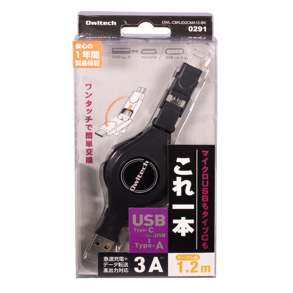PC周辺機器及びスマートフォン・タブレットアクセサリーの製造・販売を行う株式会社オウルテック(所在地:神奈川県海老名市、代表取締役:東海林春男)は、micro USBとType-Cどちらの端末にも対応する便利な充電・データ転送ケーブル「マイクロUSBもタイプCもこれ1本」を量販店並びに直販サイト(オウルテックダイレクト)にて7月中旬より発売致します。