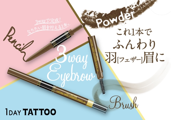 「1DAY TATTOO」でおなじみの「K-パレット ラスティングスリーウェイアイブロウペンシルWP」が、ふんわり感・落ちにくさ・描き心地が大幅QUALITY UPしてリニューアル登場します。ペンシル・パウダーともに、フェザーフラットパウダー(※1)を新配合し、自眉が増えた様にふんわり自然な眉へ仕上がります。さらに、新耐久成分を新配合で、落ちにくさもパワーアップしました。