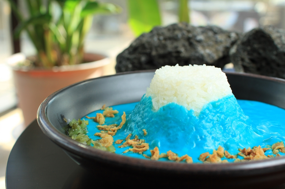 富士山の青さをリアルに再現した人気メニュー「青い富士山カレー」を商品化!【山梨県立富士山世界遺産センター】