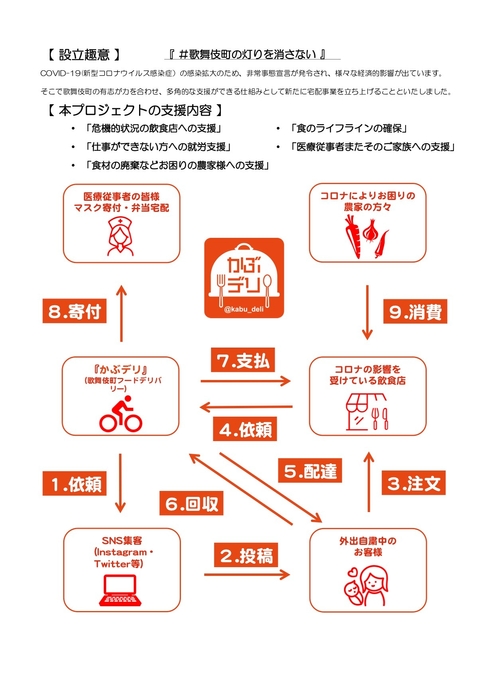 令和2年4月21日、歌舞伎町の飲食店を救う、 シェアデリバリープロジェクト 『かぶデリ』(歌舞伎町フードデリバリー)開始