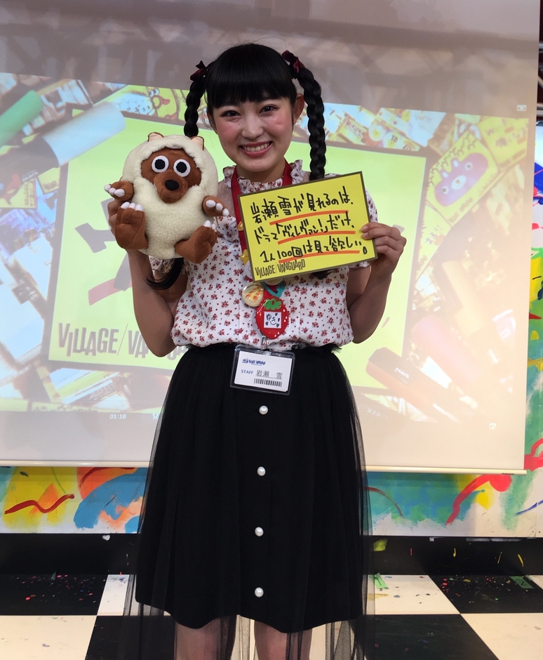 第二部では、柏木ひなたさんの登場を待ちわびるファンで埋め尽くされた会場に、ツインテールにミニスカート、さらにドラマで使用したヴィレヴァン店員の名札をぶら下げたキュートな姿で登場。また、ヴィレッジヴァンガードの立山氏が司会進行を務めました。