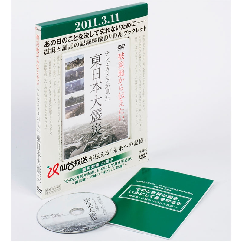 このDVDと小冊子には、被災地・宮城の震災の日とそれ以降の映像記録、取材させていただいた皆様の証言、視聴者の皆様から番組に寄せられた声、そして仙台放送で報道に当たったスタッフの証言が収められています。
